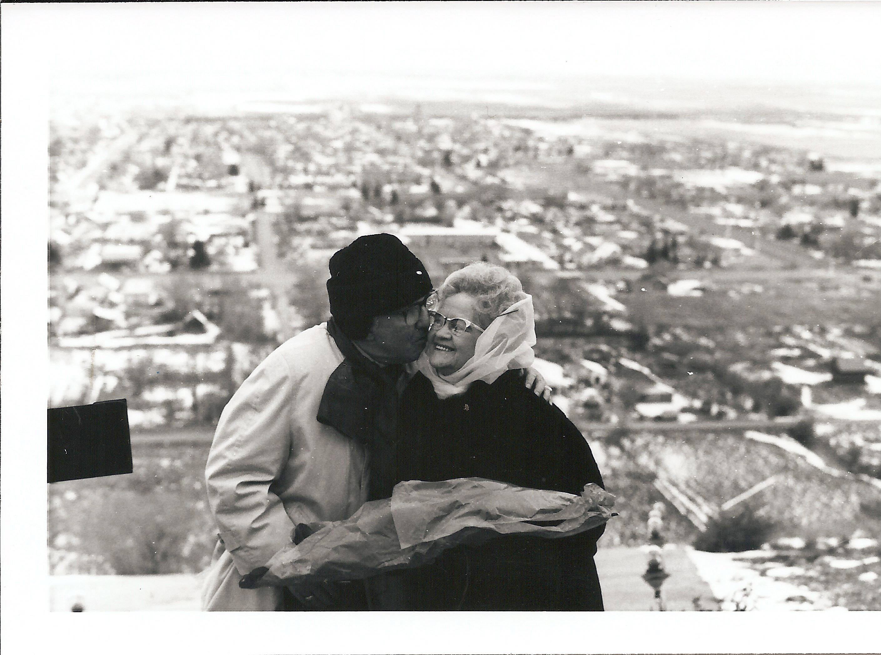 - Ferris Miles and Mrs. A.J. Winters at the dedication of the lighted "M" overlooking Montpelier, Idaho 1972