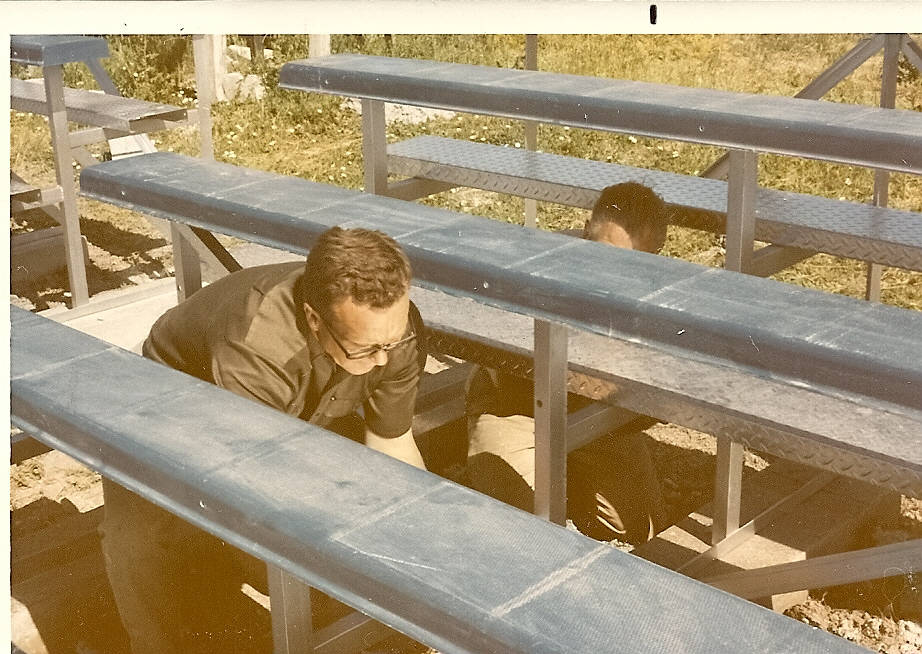 - Volunteers help install new bleachers at the Bear Lake High School Football Field 1972--Dewain Arnell