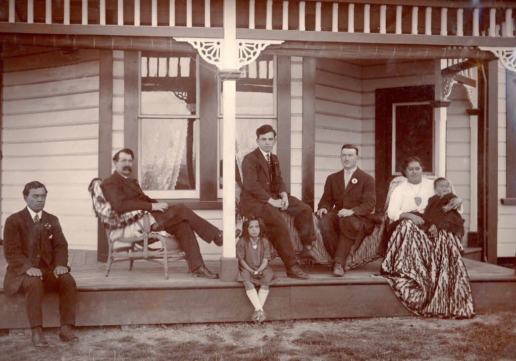 - Hugh S. Geddes (second from left) at a home in New Zealand