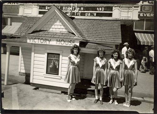 - In 1943, in connection with a military parade and concert, there was a bond drive going on. Shown here is the Victory House and four Victory girls who helped sell bonds for the war effort.