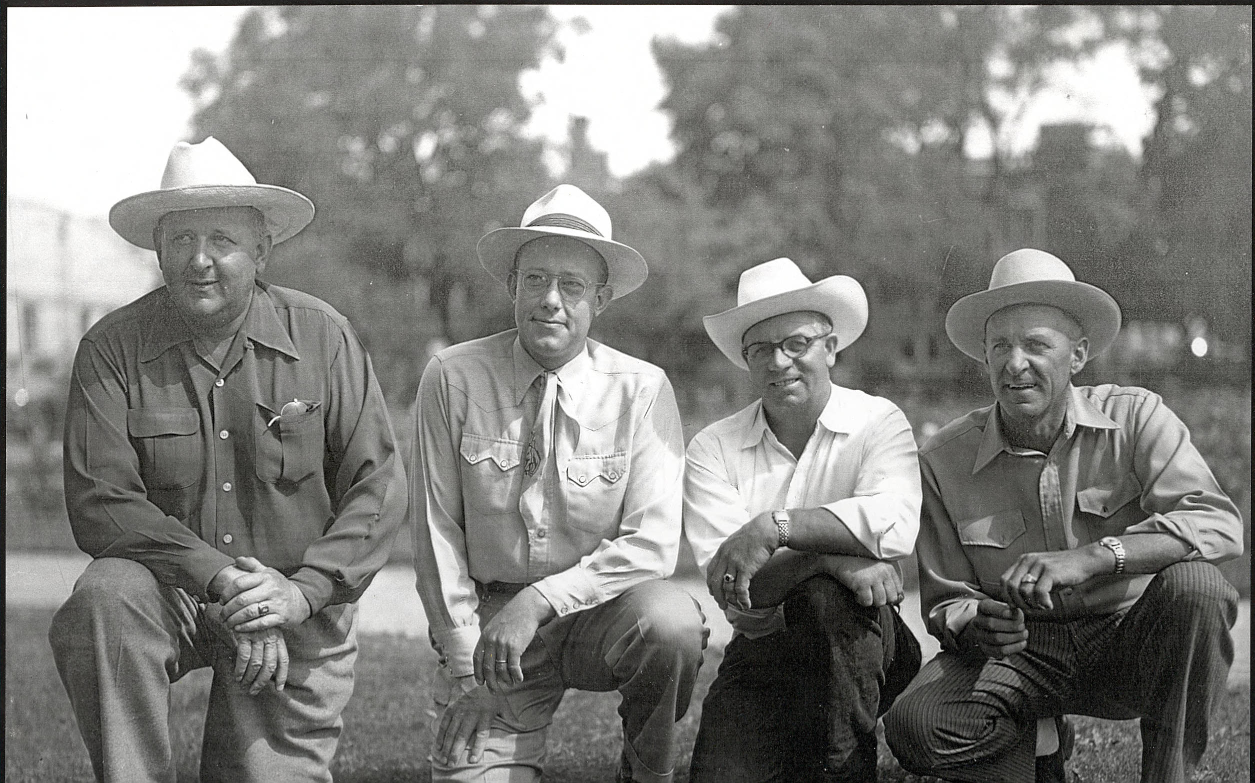 - l to r: Rodeo Committe 1951; Russ Cranney, Dr. R. L. Smith, Green Wells, Virge Knudson, and Ray Peterson (not pictured)