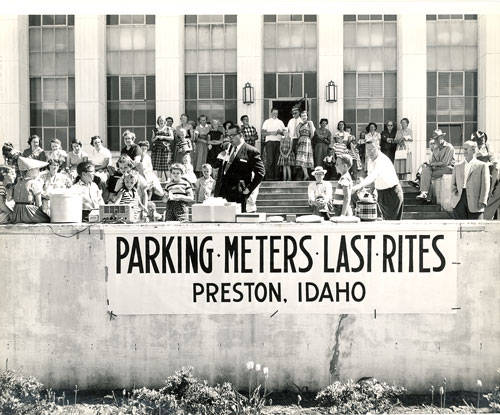 - "Parking Meters Last Rites, Preston, Idaho", Franklin County Images, Larsen-Sant Public Library, https://digitallibraryofidaho.github.io/franklin-county-images/items/pchmbr_116.html