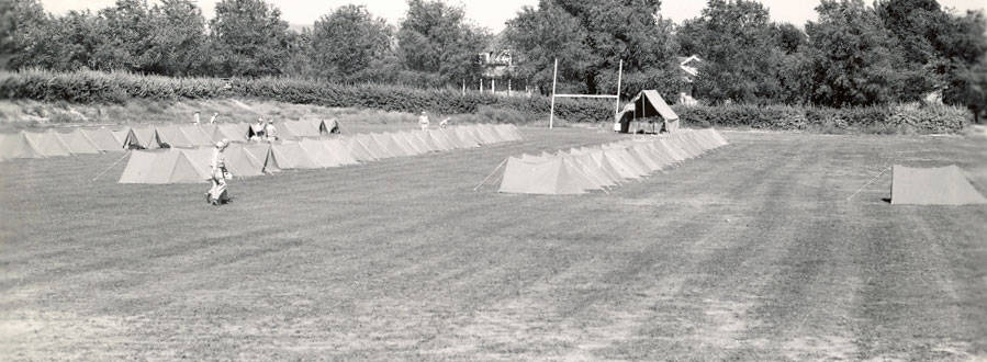 - In 1943, soldiers and equipment from Hill Field, Ogden, Utah, came to Preston to participate in a parade and concert to help raise money for the war. Shown here are the soldiers' tents on the Preston High School football field.