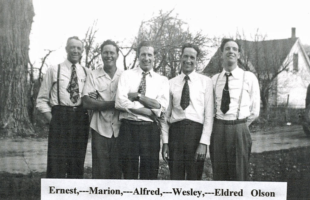 - l to r: Ernest, Marion, Alfred, Wesley, Eldred Olson