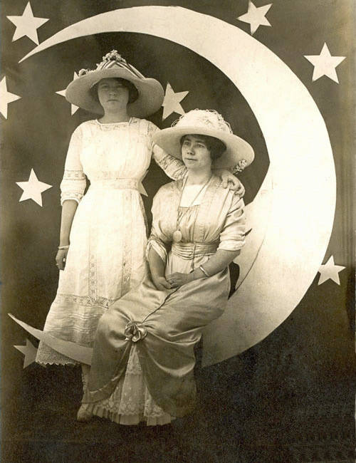 - Hazel (Hazle) Smith Carver on right with unidentified girl on the left. Moon pictures were popular at dances. Postcard picture, early 1900s. Nothing on the back of the postcard.